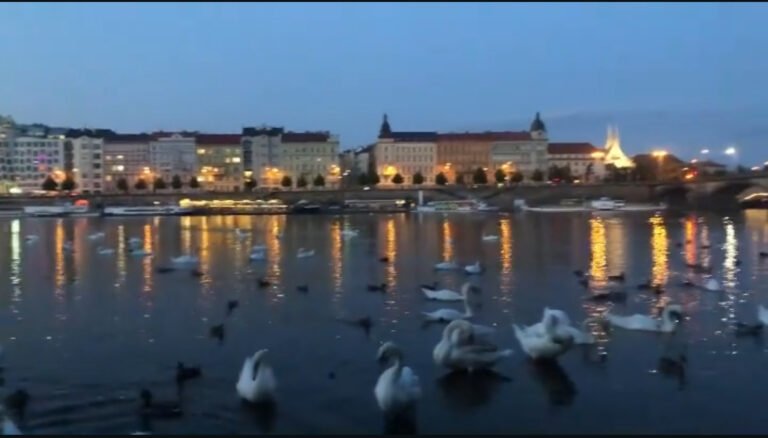 Later in the evening, we walked down to the riverbank just beneath Charles Bridge, where swans gather peacefully along the shore. The sun was low by then, painting the river gold.