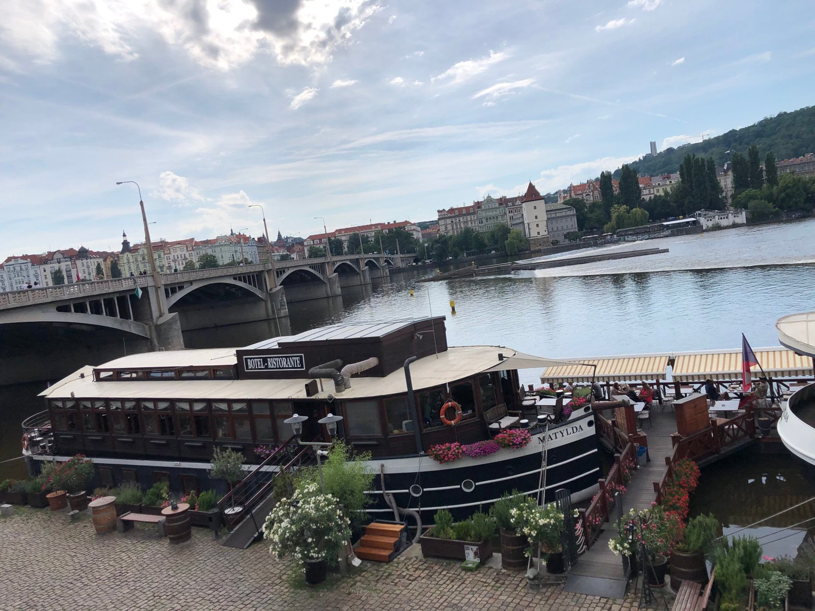 – Walk down the bridge stairs toward Kampa Park